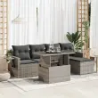 vidaXL Vrtna sedežna garnitura 6-delna z blazinami siv poli ratan