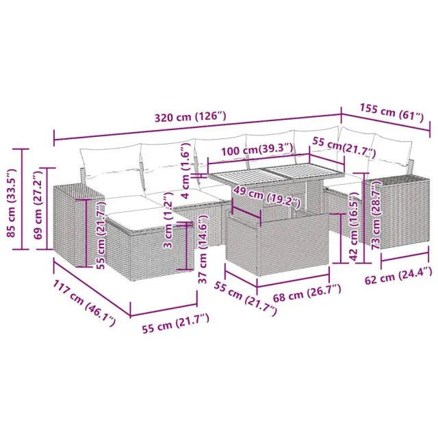 vidaXL Vrtna sedežna garnitura 8-delna z blazinami siv poli ratan