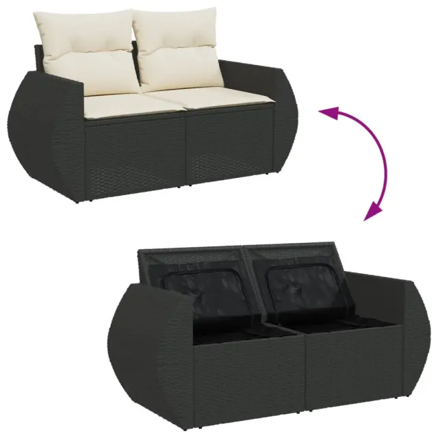 Ta vrtna sedežna garnitura je popoln dodatek za vaše dvorišče, teraso ali verando, saj zagotavlja udoben in vabljiv prostor za klepet z družino in prijatelji ali preprosto za sprostitev in uživanje na prostem. Trpežen material: PE ratan, znan tudi kot poli ratan, je močan sintetični material, ki ne potrebuje vzdrževanja in je videti kot naravni ratan. Je lahek, enostaven za čiščenje in se zaradi svoje vzdržljivosti in odpornosti na vremenske vplive pogosto uporablja za zunanje pohištvo.Funkcija shranjevanja z vodoodporno torbo: Vrtno pohištvo ima pod sedežem prostor za shranjevanje, opremljen z vodoodporno torbo za shranjevanje blazin, igrač in drugih stvari. Notranjo torbo je mogoče varno pritrditi na zunanje pohištvo s kavljem in zanko za večjo stabilnost.Nastavljiva mizna plošča: Z dvigom mizne plošče lahko mizo povišate, s čimer se zunanja klubska mizica spremeni v jedilno mizo. Popolna je za sprejemanje gostov ali uživanje v obrokih na prostem.Prevleko je mogoče odstraniti in oprati: Te sedežne blazine imajo odstranljive prevleke za lažje pranje in vzdrževanje.Modularna zasnova: Ta komplet zunanjega pohištva ima modularno zasnovo, zaradi česar je popolnoma prilagodljiv in enostaven za premikanje, tako da lahko zunanjo garnituro postavite kakor koli želite. Dobro je vedeti:Če želite, da vaše zunanje pohištvo ostane lepo, vam priporočamo, da ga zaščitite z vodoodporno prevleko.Dimenzije vodoodporne vreče: 55 x 53 x 34 cm (D x Š x V)Maksimalna nosilnost (na sedež): 110 kgUV-odpornoPlastične nastavljive nogePotrebno sestavljanje: DaKotni sedež:Barva: ČrnaMaterial: PE ratan, jeklen okvir s prašnim premazomDimenzije: 62 x 62 x 69 cm (Š x G x V)Velikost sedeža: 55 x 55 cm (Š x G)Višina sedeža od tal (brez blazine): 37 cmKotni sedež s naslonom za roke iz ratana:Barva: ČrnaMaterial: PE ratan, jeklen okvir s prašnim premazomDimenzije: 71 x 62 x 69 cm (Š x G x V)Velikost sedeža: 55 x 55 cm (Š x G)Višina sedeža od tal (brez blazine): 37 cmVišina naslonjal za roke od tal: 55 cmSrednji sedež:Barva: ČrnaMaterial: PE ratan, jeklen okvir s prašnim premazomDimenzije: 55 x 62 x 69 cm (Š x G x V)Velikost sedeža: 55 x 55 cm (Š x G)Višina sedeža od tal (brez blazine): 37 cmMiza:Barva: ČrnaMaterial: PE ratan, prašno premazano jeklo, trden akacijev les z oljnim premazomDimenzije: 100 x 55 x 44/73 cm (D x Š x V)Blazina:Barva: Kremno belaMaterial prevleke: Tkanina (100 % poliester)Polnilo sedežne blazine: PenaPolnilo hrbtne blazine: bombažna vlaknaDimenzije sedežne blazine: 55 x 55 x 3 cm (Š x G x D)Dimenzije hrbtne blazine: 55 x 45 x 13 cm (D x Š x D)Paket vsebuje:1 x Vrtna miza2 x Kotni kavč s funkcijo shranjevanja z vodoodporno vrečo2 x Kotni sedež z naslonom za roke iz ratana s funkcijo shranjevanja z vodoodporno torbo3 x Srednji kavč s funkcijo shranjevanja z vodoodporno vrečo9 x Blazina za hrbet7 x Sedežna blazina s snemljivo in pralno prevleko 3327234