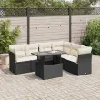 vidaXL Vrtna sedežna garnitura 7-delna z blazinami črn poli ratan