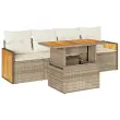 Ta vrtna sedežna garnitura je popoln dodatek za vaše dvorišče, teraso ali verando, saj zagotavlja udoben in vabljiv prostor za klepet z družino in prijatelji ali preprosto za sprostitev in uživanje na prostem. Trpežen material: PE ratan, znan tudi kot poli ratan, je močan sintetični material, ki ne potrebuje vzdrževanja in je videti kot naravni ratan. Je lahek, enostaven za čiščenje in se zaradi svoje vzdržljivosti in odpornosti na vremenske vplive pogosto uporablja za zunanje pohištvo.Funkcija shranjevanja z vodoodporno vrečo: Vsak vrtni sedež ima prostor za shranjevanje pod sedežem, skupaj z vodoodporno vrečo za shranjevanje blazin, igrač in drugih predmetov. Notranje vreče imajo zgornjo prevleko in jih je mogoče s pomočjo primenjal varno pritrditi na sedeže za dodatno varnost.Prevleko je mogoče odstraniti in oprati: Te sedežne blazine imajo odstranljive prevleke za lažje pranje in vzdrževanje.Modularna zasnova: Ta komplet zunanjega pohištva ima modularno zasnovo, zaradi česar je popolnoma prilagodljiv in enostaven za premikanje, tako da lahko zunanjo garnituro postavite kakor koli želite. Dobro je vedeti:Če želite, da vaše zunanje pohištvo ostane lepo, vam priporočamo, da ga zaščitite z vodoodporno prevleko.Dimenzije vodoodporne vreče: 55 x 53 x 34 cm (D x Š x V)Največja dovoljena teža (na sedež): 110 kgUV-odpornoPlastične nastavljive nogePotrebno sestavljanje: DaSrednji sedež:Barva: BežMaterial: PE ratan, jeklen okvir s prašnim premazomDimenzije: 55 x 62 x 69 cm (Š x G x V)Velikost sedeža: 55 x 55 cm (Š x G)Višina sedeža od tal (brez blazine): 37 cmKavč z naslonjali za roke:Barva: BežMaterial: PE ratan, prašno premazano jeklo, trden akacijev les z oljnim premazomDimenzije: 59 x 62 x 69 cm (Š x G x V)Velikost sedeža: 55 x 55 cm (Š x G)Višina sedeža od tal (brez blazine): 37 cmMiza:Barva: BežMaterial: PE ratan, prašno premazano jeklo, trden akacijev les z oljnim premazomDimenzije: 100 x 55 x 44/73 cm (D x Š x V)Blazina:Barva: BelaMaterial prevleke: Tkanina (100 % poliester)Polnilo sedežne blazine: PenaPolnilo hrbtne blazine: bombažna vlaknaDimenzije sedežne blazine: 55 x 55 x 3 cm (Š x G x D)Dimenzije hrbtne blazine: 55 x 45 x 13 cm (D x Š x D)Paket vsebuje:2 x Srednji kavč s funkcijo shranjevanja z vodoodporno vrečo2 x Kavč s funkcijo shranjevanja z vodoodporno vrečo1 x Miza4 x Blazina za hrbet4 x Sedežna blazina s snemljivo in pralno prevleko 3327656