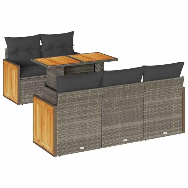 vidaXL Vrtna sedežna garnitura z blazinami 6-delna siv ratan/akacija