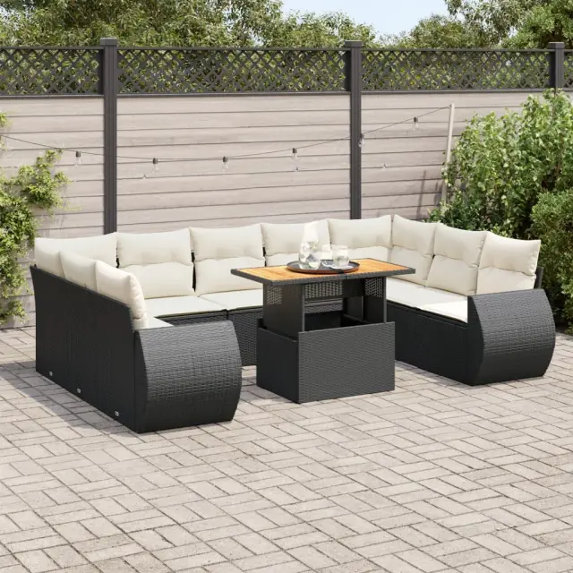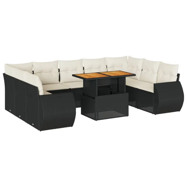 vidaXL Vrtna sedežna garnitura 10-delna z blazinami črn poli ratan