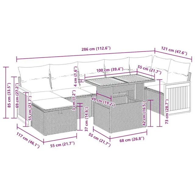 vidaXL Vrtna sedežna garnitura 5-delna z blazinami črn poli ratan