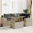 Ta vrtna sedežna garnitura je popoln dodatek za vaše dvorišče, teraso ali verando, saj zagotavlja udoben in vabljiv prostor za klepet z družino in prijatelji ali preprosto za sprostitev in uživanje na prostem. Trpežen material: PE ratan, znan tudi kot poli ratan, je močan sintetični material, ki ne potrebuje vzdrževanja in je videti kot naravni ratan. Je lahek, enostaven za čiščenje in se zaradi svoje vzdržljivosti in odpornosti na vremenske vplive pogosto uporablja za zunanje pohištvo.Funkcija shranjevanja z vodoodporno torbo: Vrtno pohištvo ima pod sedežem prostor za shranjevanje, opremljen z vodoodporno torbo za shranjevanje blazin, igrač in drugih stvari. Notranjo torbo je mogoče varno pritrditi na zunanje pohištvo s kavljem in zanko za večjo stabilnost.Nastavljiva mizna plošča: Z dvigom mizne plošče lahko mizo povišate, s čimer se zunanja klubska mizica spremeni v jedilno mizo. Popolna je za sprejemanje gostov ali uživanje v obrokih na prostem.Prevleko je mogoče odstraniti in oprati: Te sedežne blazine imajo odstranljive prevleke za lažje pranje in vzdrževanje.Modularna zasnova: Ta komplet zunanjega pohištva ima modularno zasnovo, zaradi česar je popolnoma prilagodljiv in enostaven za premikanje, tako da lahko zunanjo garnituro postavite kakor koli želite. Dobro je vedeti:Če želite, da vaše zunanje pohištvo ostane lepo, vam priporočamo, da ga zaščitite z vodoodporno prevleko.Dimenzije vodoodporne vreče: 55 x 53 x 34 cm (D x Š x V)Maksimalna nosilnost (na sedež): 110 kgUV-odpornoPlastične nastavljive nogePotrebno sestavljanje: DaKotni sedež:Barva: Svetlo sivaMaterial: PE ratan, jeklen okvir s prašnim premazomDimenzije: 62 x 62 x 69 cm (Š x G x V)Velikost sedeža: 55 x 55 cm (Š x G)Višina sedeža od tal (brez blazine): 37 cmKotni sedež s naslonom za roke iz ratana:Barva: Svetlo sivaMaterial: PE ratan, jeklen okvir s prašnim premazomDimenzije: 83 x 62 x 69 cm (Š x G x V)Velikost sedeža: 55 x 55 cm (Š x G)Višina sedeža od tal (brez blazine): 37 cmVišina naslonjal za roke od tal: 55 cmŠirina naslona za roke: 27,5 cmSrednji sedež:Barva: Svetlo sivaMaterial: PE ratan, jeklen okvir s prašnim premazomDimenzije: 55 x 62 x 69 cm (Š x G x V)Velikost sedeža: 55 x 55 cm (Š x G)Višina sedeža od tal (brez blazine): 37 cmMiza:Barva: Svetlo sivaMaterial: PE ratan, jeklo s prašnim premazom, kaljeno stekloDimenzije: 100 x 55 x 44/73 cm (D x Š x V)Blazina:Barva: Temno sivaMaterial prevleke: Tkanina (100 % poliester)Polnilo sedežne blazine: PenaPolnilo hrbtne blazine: bombažna vlaknaDimenzije sedežne blazine: 55 x 55 x 3 cm (Š x G x D)Dimenzije hrbtne blazine: 55 x 45 x 13 cm (D x Š x D)Paket vsebuje:1 x Vrtna miza1 x Kotni kavč s funkcijo shranjevanja z vodoodporno vrečo2 x Kotni sedež z naslonom za roke iz ratana s funkcijo shranjevanja z vodoodporno torbo1 x Srednji kavč s funkcijo shranjevanja z vodoodporno vrečo5 x Blazina za hrbet4 x Sedežna blazina s snemljivo in pralno prevleko 3326793