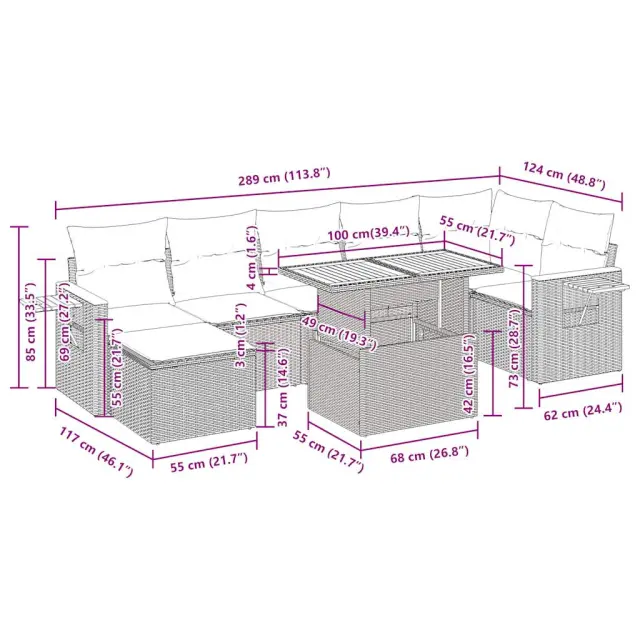 vidaXL Vrtna sedežna garnitura z blazinami 8-delna črn ratan/akacija