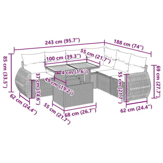 vidaXL Vrtna sedežna garnitura 7-delna z blazinami siv poli ratan