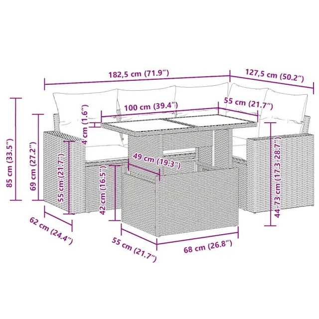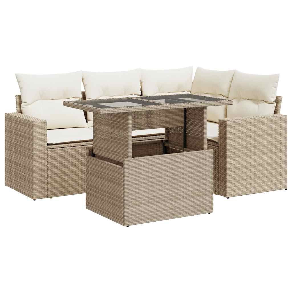 vidaXL Vrtna sedežna garnitura 5-delna z blazinami bež poli ratan