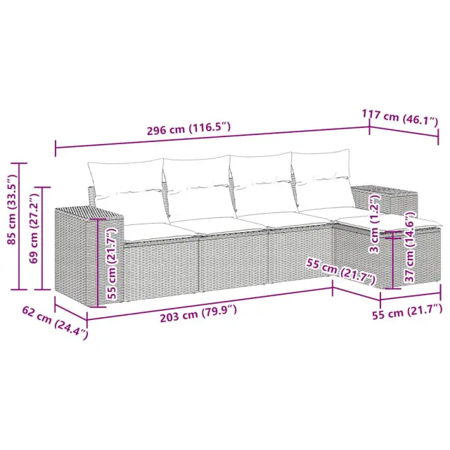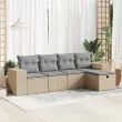 vidaXL Vrtna sedežna garnitura 5-delna z blazinami bež poli ratan