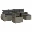 Ta vrtna sedežna garnitura je popoln dodatek za vaše dvorišče, teraso ali verando, saj zagotavlja udoben in vabljiv prostor za klepet z družino in prijatelji ali preprosto za sprostitev in uživanje na prostem. Trpežen material: PE ratan, znan tudi kot poli ratan, je močan sintetični material, ki ne potrebuje vzdrževanja in je videti kot naravni ratan. Je lahek, enostaven za čiščenje in se zaradi svoje vzdržljivosti in odpornosti na vremenske vplive pogosto uporablja za zunanje pohištvo.Funkcija shranjevanja z vodoodporno vrečo: Vsak vrtni sedež ima pod sedežem prostor za shranjevanje, opremljen z vodoodporno vrečo za shranjevanje blazin, igrač in drugih predmetov. Notranja torba ima zgornji pokrov in jo je mogoče varno pritrditi na sedež s kavljem in zanko za večjo stabilnost.Nastavljiva mizna plošča: Z dvigom mizne plošče lahko mizo povišate, s čimer se zunanja klubska mizica spremeni v jedilno mizo. Popolna je za sprejemanje gostov ali uživanje v obrokih na prostem.Vsestranski stolček za noge: Stolček je vsestransko uporaben, saj služi kot udoben naslon za noge, ko ležite na kavču, ali kot dodaten sedež na vrtu.Prevleko je mogoče odstraniti in oprati: Te sedežne blazine imajo odstranljive prevleke za lažje pranje in vzdrževanje.Robusten in stabilen okvir: Jeklen okvir s prašnim premazom je močan, stabilen, trpežen ter odporen na korozijo in slabe vremenske razmere, kar zagotavlja dolgotrajno delovanje. Dobro je vedeti:Če želite, da vaše zunanje pohištvo ostane lepo, vam priporočamo, da ga zaščitite z vodoodporno prevleko.Dimenzije vodoodporne vreče: 55 x 53 x 34 cm (D x Š x V)Največja dovoljena teža (na sedež): 110 kgUV-odpornoPlastične nastavljive nogePotrebno sestavljanje: DaSrednji sedež:Barva: SivaMaterial: PE ratan, jeklen okvir s prašnim premazomDimenzije: 55 x 62 x 69 cm (Š x G x V)Velikost sedeža: 55 x 55 cm (Š x G)Višina sedeža od tal (brez blazine): 37 cmKavč z naslonjali za roke:Barva: SivaMaterial: PE ratan, jeklen okvir s prašnim premazomDimenzije: 71 x 62 x 69 cm (Š x G x V)Velikost sedeža: 55 x 55 cm (Š x G)Višina sedeža od tal (brez blazine): 37 cmVišina naslonjal za roke od tal: 55 cmStolček za noge:Barva: SivaMaterial: PE ratan, jeklen okvir s prašnim premazomDimenzije: 55 x 55 x 37 cm (Š x G x V)Miza:Barva: SivaMaterial: PE ratan, jeklo s prašnim premazom, kaljeno stekloDimenzije: 100 x 55 x 44/73 cm (D x Š x V)Blazina:Barva: Temno sivaMaterial prevleke: Tkanina (100 % poliester)Polnilo sedežne blazine: PenaPolnilo hrbtne blazine: bombažna vlaknaDimenzije sedežne blazine: 55 x 55 x 3 cm (Š x G x D)Dimenzije hrbtne blazine: 55 x 45 x 13 cm (D x Š x D)Paket vsebuje:2 x Srednji kavč s funkcijo shranjevanja z vodoodporno vrečo2 x Kavč s funkcijo shranjevanja z vodoodporno vrečo1 x Stolček za noge s funkcijo shranjevanja z vodoodporno vrečo1 x Miza4 x Blazina za hrbet5 x Sedežna blazina s snemljivo pralno prevleko 3326621
