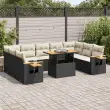 vidaXL Vrtna sedežna garnitura z blazinami 10-delna črn ratan/akacija