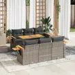 vidaXL Vrtna sedežna garnitura z blazinami 7-delna siv ratan/akacija