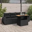 Ta vrtna sedežna garnitura je popoln dodatek za vaše dvorišče, teraso ali verando, saj zagotavlja udoben in vabljiv prostor za klepet z družino in prijatelji ali preprosto za sprostitev in uživanje na prostem. Trpežen material: PE ratan, znan tudi kot poli ratan, je močan sintetični material, ki ne potrebuje vzdrževanja in je videti kot naravni ratan. Je lahek, enostaven za čiščenje in se zaradi svoje vzdržljivosti in odpornosti na vremenske vplive pogosto uporablja za zunanje pohištvo.Funkcija shranjevanja z vodoodporno torbo: Vrtno pohištvo ima pod sedežem prostor za shranjevanje, opremljen z vodoodporno torbo za shranjevanje blazin, igrač in drugih stvari. Notranjo torbo je mogoče varno pritrditi na zunanje pohištvo s kavljem in zanko za večjo stabilnost.Nastavljiva mizna plošča: Z dvigom mizne plošče lahko mizo povišate, s čimer se zunanja klubska mizica spremeni v jedilno mizo. Popolna je za sprejemanje gostov ali uživanje v obrokih na prostem.Prevleko je mogoče odstraniti in oprati: Te sedežne blazine imajo odstranljive prevleke za lažje pranje in vzdrževanje.Modularna zasnova: Ta komplet zunanjega pohištva ima modularno zasnovo, zaradi česar je popolnoma prilagodljiv in enostaven za premikanje, tako da lahko zunanjo garnituro postavite kakor koli želite. Dobro je vedeti:Če želite, da vaše zunanje pohištvo ostane lepo, vam priporočamo, da ga zaščitite z vodoodporno prevleko.Dimenzije vodoodporne vreče: 55 x 53 x 34 cm (D x Š x V)Maksimalna nosilnost (na sedež): 110 kgUV-odpornoPlastične nastavljive nogePotrebno sestavljanje: DaKotni sedež:Barva: ČrnaMaterial: PE ratan, jeklen okvir s prašnim premazomDimenzije: 71 x 62 x 69 cm (Š x G x V)Velikost sedeža: 55 x 55 cm (Š x G)Višina sedeža od tal (brez blazine): 37 cmVišina naslonjal za roke od tal: 55 cmSrednji sedež:Barva: ČrnaMaterial: PE ratan, jeklen okvir s prašnim premazomDimenzije: 55 x 62 x 69 cm (Š x G x V)Velikost sedeža: 55 x 55 cm (Š x G)Višina sedeža od tal (brez blazine): 37 cmMiza:Barva: ČrnaMaterial: PE ratan, prašno premazano jeklo, trden akacijev les z oljnim premazomDimenzije: 100 x 55 x 44/73 cm (D x Š x V)Blazina:Barva: ČrnaMaterial prevleke: Tkanina (100 % poliester)Polnilo sedežne blazine: PenaPolnilo hrbtne blazine: bombažna vlaknaDimenzije sedežne blazine: 55 x 55 x 3 cm (Š x G x D)Dimenzije hrbtne blazine: 55 x 45 x 13 cm (D x Š x D)Paket vsebuje:1 x Vrtna miza2 x Kotni kavč s funkcijo shranjevanja z vodoodporno vrečo2 x Srednji kavč s funkcijo shranjevanja z vodoodporno vrečo4 x Blazina za hrbet4 x Sedežna blazina s snemljivo in pralno prevleko 3327205
