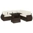 vidaXL Vrtna sedežna garnitura 7-delna z blazinami rjav poli ratan