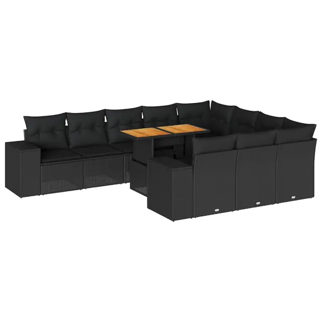 vidaXL Vrtna sedežna garnitura z blazinami 10-delna črn ratan/akacija