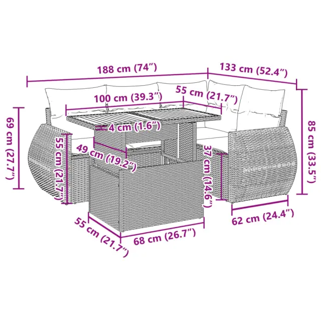 vidaXL Vrtna sedežna garnitura 5-delna z blazinami bež poli ratan