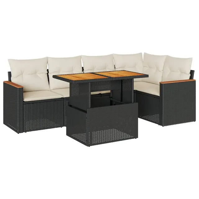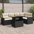 vidaXL Vrtna sedežna garnitura z blazinami 6-delna črn ratan/akacija