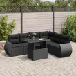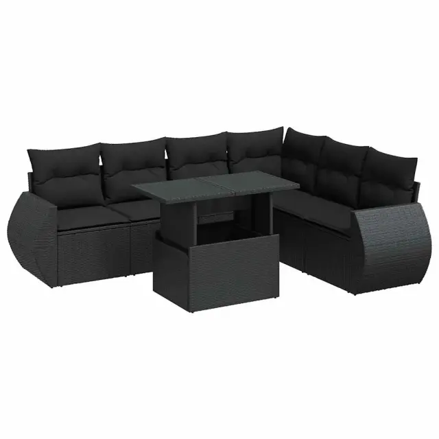 vidaXL Vrtna sedežna garnitura 7-delna z blazinami črn poli ratan