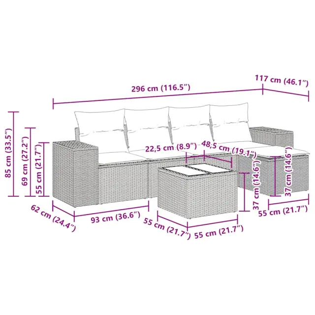 vidaXL Vrtna sedežna garnitura 6-delna z blazinami rjav poli ratan