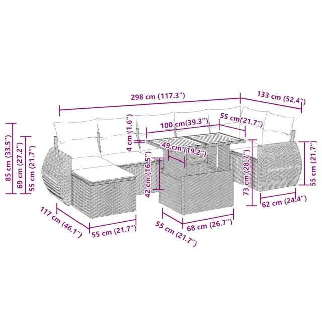 vidaXL Vrtna sedežna garnitura 5-delna z blazinami bež ratan akacija