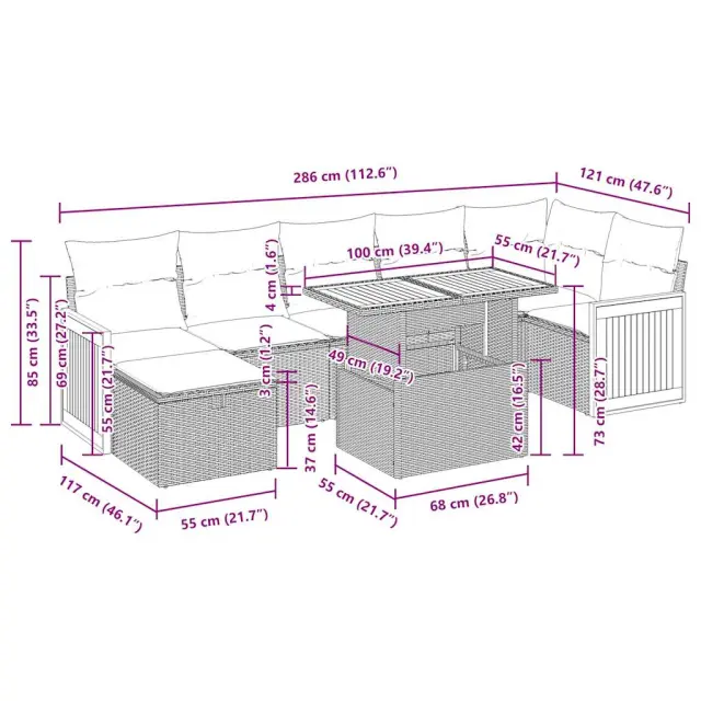 vidaXL Vrtna sedežna garnitura 5-delna z blazinami bež poli ratan