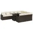 vidaXL Vrtna sedežna garnitura 11-delna z blazinami rjava poli ratan