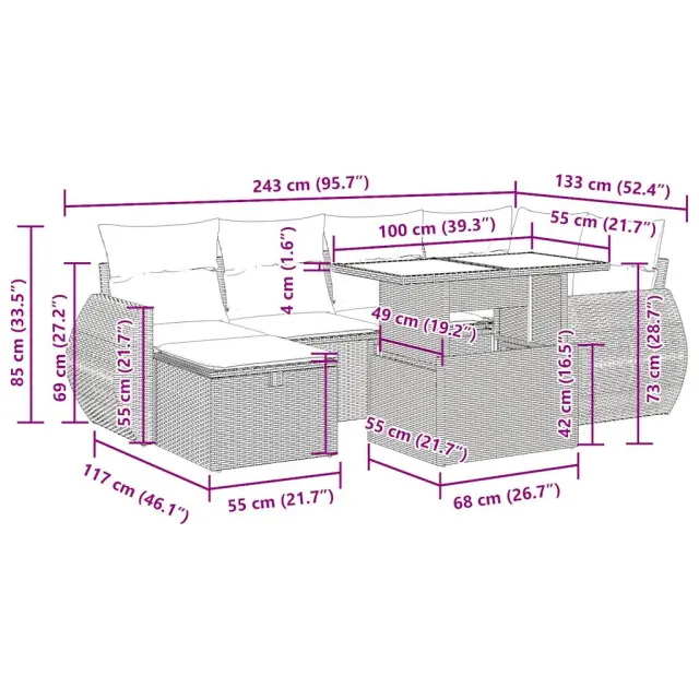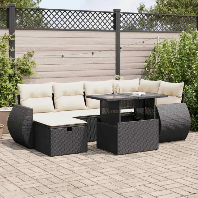 vidaXL Vrtna sedežna garnitura 7-delna z blazinami črn poli ratan