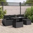 vidaXL Vrtna sedežna garnitura 6-delna z blazinami črna poli ratan