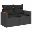vidaXL Vrtna sedežna garnitura z blazinami 7-delna črn ratan/akacija