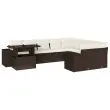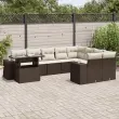 vidaXL Vrtna sedežna garnitura 10-delna z blazinami rjava poli ratan