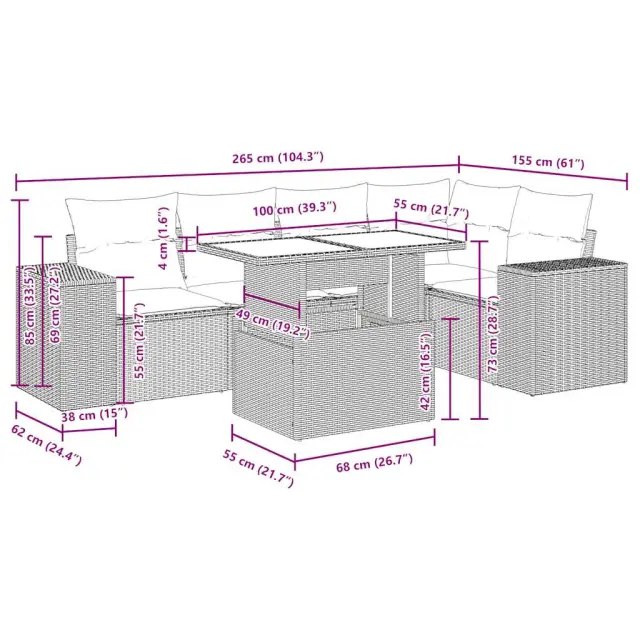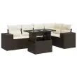 vidaXL Vrtna sedežna garnitura 6-delna z blazinami rjav poli ratan