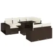 Ta vrtna sedežna garnitura je popoln dodatek za vaše dvorišče, teraso ali verando, saj zagotavlja udoben in vabljiv prostor za klepet z družino in prijatelji ali preprosto za sprostitev in uživanje na prostem. Vzdržljiv material: PE ratan, znan tudi kot poli ratan, je močan sintetični material, ki zahteva malo vzdrževanja in je videti kot naravni ratan. Je lahek, enostaven za čiščenje in se zaradi svoje vzdržljivosti in odpornosti na vremenske vplive pogosto uporablja za zunanje pohištvo. Udobno sedenje: To zunanje pohištvo z debelo oblazinjenimi blazinami zagotavlja udobno sedenje. Nastavljiva mizna plošča: Z dvigom mizne plošče lahko mizo povišate, s čimer se zunanja klubska mizica spremeni v jedilno mizo. Popolna je za sprejemanje gostov ali uživanje v obrokih na prostem. Vsestranski stolček za noge: Stolček je vsestransko uporaben, saj služi kot udoben naslon za noge, ko ležite na kavču, ali kot dodaten sedež na vrtu. Modularna zasnova: Ta komplet zunanjega pohištva ima modularno zasnovo, zaradi česar je popolnoma prilagodljiv in enostaven za premikanje, tako da lahko zunanjo garnituro postavite kakor koli želite. Dobro je vedeti:Če želite, da vaše zunanje pohištvo ostane lepo, vam priporočamo, da ga zaščitite z vodoodporno prevleko.Maksimalna nosilnost (na sedež): 110 kgUV-odpornoPotrebno sestavljanje: DaKotni sedež:Barva: RjavaMaterial: PE ratan, jeklen okvir s prašnim premazomDimenzije: 62 x 62 x 69 cm (Š x G x V)Velikost sedeža: 55 x 55 cm (Š x G)Višina sedeža, merjena od tal: 37 cmSrednji sedež:Barva: RjavaMaterial: PE ratan, jeklen okvir s prašnim premazomDimenzije: 55 x 62 x 69 cm (Š x G x V)Velikost sedeža: 55 x 55 cm (Š x G)Višina sedeža, merjena od tal: 37 cmKavč z naslonjali za roke:Barva: RjavaMaterial: PE ratan, jeklen okvir s prašnim premazomDimenzije: 65,5 x 62 x 69 cm (Š x G x V)Velikost sedeža: 55 x 55 cm (Š x G)Višina sedeža, merjena od tal: 37 cmVišina naslonjal za roke od tal: 55 cmStolček za noge:Barva: RjavaMaterial: PE ratan, jeklen okvir s prašnim premazomDimenzije: 55 x 55 x 37 cm (Š x G x V)Velikost sedeža: 55 x 55 cm (Š x G)Višina sedeža, merjena od tal: 37 cmPolica za shranjevanje:Barva: RjavaMaterial: PE ratan, jeklen okvir s prašnim premazomDimenzije (L): 112 x 27 x 55 cm (D x Š x V)Dimenzije (S): 58 x 27 x 55 cm (D x Š x V)Miza:Barva: RjavaMaterial: PE ratan, jeklo s prašnim premazom, kaljeno stekloDimenzije: 100 x 55 x 44/73 cm (D x Š x V)Blazina:Barva: Kremno belaMaterial prevleke: Tkanina (100 % poliester)Polnilo sedežne blazine: PenaPolnilo hrbtne blazine: bombažna vlaknaDimenzije sedežne blazine: 55 x 55 x 3 cm (Š x G x D)Dimenzije hrbtne blazine: 55 x 45 x 13 cm (D x Š x D)Paket vsebuje:1 x Kotni sedež4 x Srednji sedež2 x Kavč z naslonjali za roke1 x Stolček za noge2 x Regal s policami1 x Vrtna miza8 x Blazina za hrbet8 x Sedežna blazina s snemljivo in pralno prevleko 3274586
