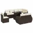 Ta vrtna sedežna garnitura je popoln dodatek za vaše dvorišče, teraso ali verando, saj zagotavlja udoben in vabljiv prostor za klepet z družino in prijatelji ali preprosto za sprostitev in uživanje na prostem. Trpežen material: PE ratan, znan tudi kot poli ratan, je močan sintetični material, ki ne potrebuje vzdrževanja in je videti kot naravni ratan. Je lahek, enostaven za čiščenje in se zaradi svoje vzdržljivosti in odpornosti na vremenske vplive pogosto uporablja za zunanje pohištvo.Funkcija shranjevanja z vodoodporno vrečo: Vsak vrtni sedež ima pod sedežem prostor za shranjevanje, opremljen z vodoodporno vrečo za shranjevanje blazin, igrač in drugih predmetov. Notranja torba ima zgornji pokrov in jo je mogoče varno pritrditi na sedež s kavljem in zanko za večjo stabilnost.Nastavljiva mizna plošča: Z dvigom mizne plošče lahko mizo povišate, s čimer se zunanja klubska mizica spremeni v jedilno mizo. Popolna je za sprejemanje gostov ali uživanje v obrokih na prostem.Prevleko je mogoče odstraniti in oprati: Te sedežne blazine imajo odstranljive prevleke za lažje pranje in vzdrževanje.Robusten in stabilen okvir: Jeklen okvir s prašnim premazom je močan, stabilen, trpežen ter odporen na korozijo in slabe vremenske razmere, kar zagotavlja dolgotrajno delovanje. Dobro je vedeti:Če želite, da vaše zunanje pohištvo ostane lepo, vam priporočamo, da ga zaščitite z vodoodporno prevleko.Dimenzije vodoodporne vreče: 55 x 53 x 34 cm (D x Š x V)Največja dovoljena teža (na sedež): 110 kgUV-odpornoPlastične nastavljive nogePotrebno sestavljanje: DaSrednji sedež:Barva: RjavaMaterial: PE ratan, jeklen okvir s prašnim premazomDimenzije: 55 x 62 x 69 cm (Š x G x V)Velikost sedeža: 55 x 55 cm (Š x G)Višina sedeža od tal (brez blazine): 37 cmKotni sedež:Barva: RjavaMaterial: PE ratan, jeklen okvir s prašnim premazomDimenzije: 62 x 62 x 69 cm (Š x G x V)Velikost sedeža: 55 x 55 cm (Š x G)Višina sedeža od tal (brez blazine): 37 cmKavč z naslonjali za roke:Barva: RjavaMaterial: PE ratan, jeklen okvir s prašnim premazomDimenzije: 71 x 62 x 69 cm (Š x G x V)Velikost sedeža: 55 x 55 cm (Š x G)Višina sedeža od tal (brez blazine): 37 cmVišina naslonjal za roke od tal: 55 cmMiza:Barva: RjavaMaterial: PE ratan, jeklo s prašnim premazom, kaljeno stekloDimenzije: 100 x 55 x 44/73 cm (D x Š x V)Blazina:Barva: Kremno belaMaterial prevleke: Tkanina (100 % poliester)Polnilo sedežne blazine: PenaPolnilo hrbtne blazine: bombažna vlaknaDimenzije sedežne blazine: 55 x 55 x 3 cm (Š x G x D)Dimenzije hrbtne blazine: 55 x 45 x 13 cm (D x Š x D)Paket vsebuje:3 x Srednji kavč s funkcijo shranjevanja z vodoodporno vrečo1 x Kotni kavč s funkcijo shranjevanja z vodoodporno vrečo4 x Kavč s funkcijo shranjevanja z vodoodporno vrečo1 x Miza9 x Blazina za hrbet8 x Sedežna blazina s snemljivo in pralno prevleko 3326664
