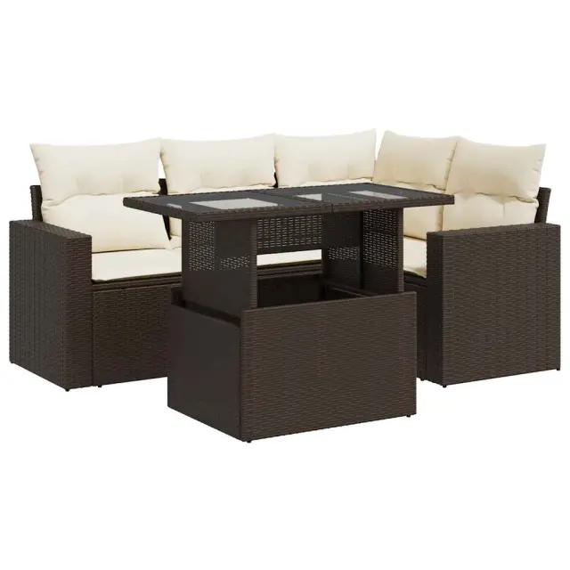 vidaXL Vrtna sedežna garnitura 5-delna z blazinami rjav poli ratan