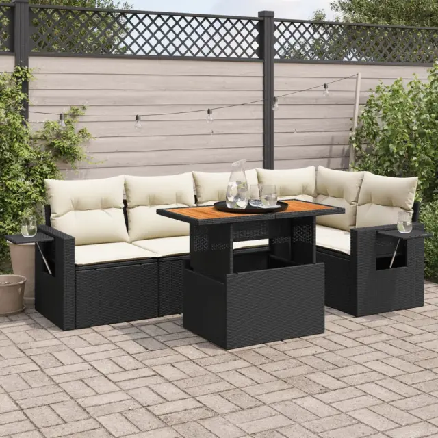 vidaXL Vrtna sedežna garnitura 6-delna z blazinami črna poli ratan