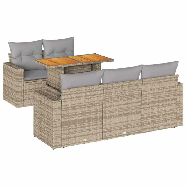 vidaXL Vrtna sedežna garnitura 6-delna z blazinami bež poli ratan