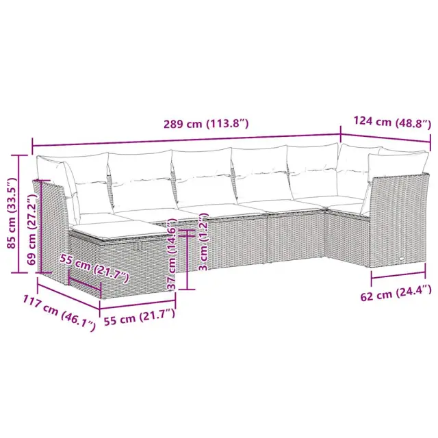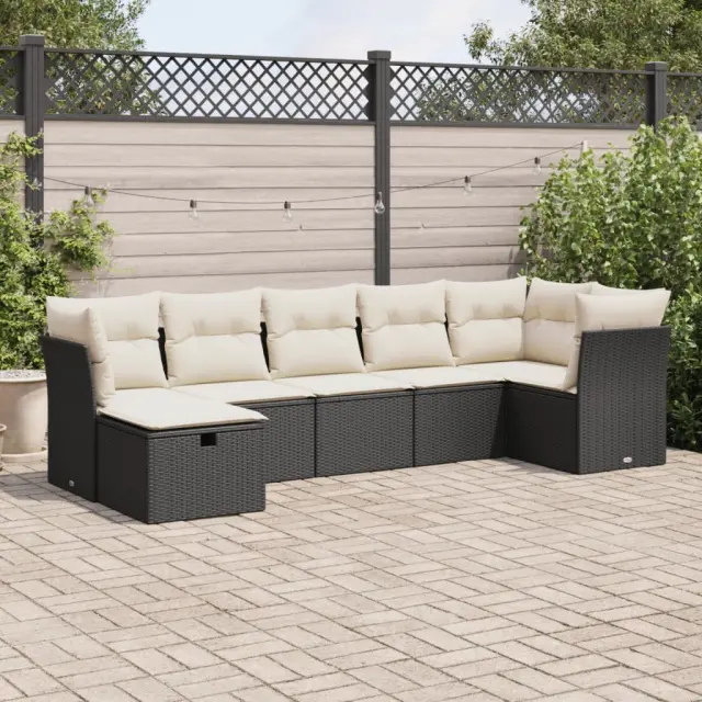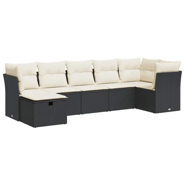 vidaXL Vrtna sedežna garnitura 7-delna z blazinami črn poli ratan