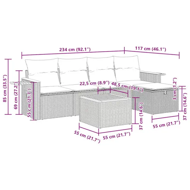 vidaXL Vrtna sedežna garnitura 6-delna z blazinami bež poli ratan