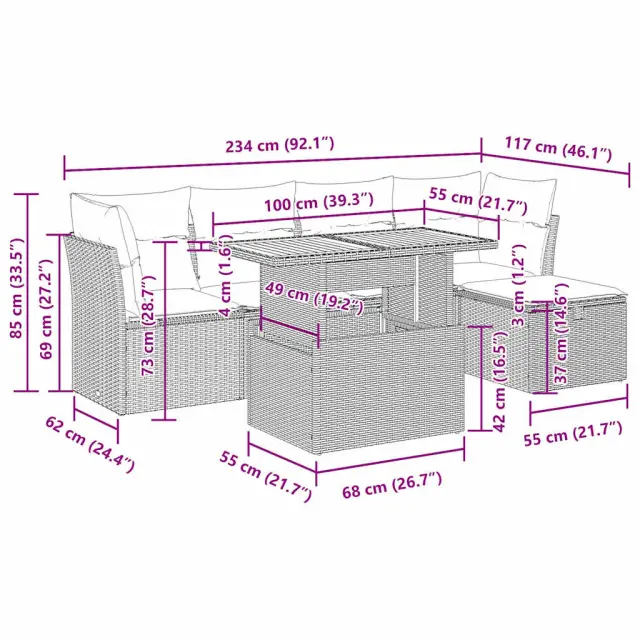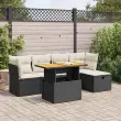vidaXL Vrtna sedežna garnitura z blazinami 6-delna črn ratan/akacija