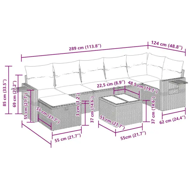 vidaXL Vrtna sedežna garnitura 8-delna z blazinami bež poli ratan