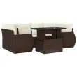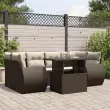 Ta vrtna sedežna garnitura je popoln dodatek za vaše dvorišče, teraso ali verando, saj zagotavlja udoben in vabljiv prostor za klepet z družino in prijatelji ali preprosto za sprostitev in uživanje na prostem. Vzdržljiv material: PE ratan, znan tudi kot poli ratan, je močan sintetični material, ki zahteva malo vzdrževanja in je videti kot naravni ratan. Je lahek, enostaven za čiščenje in se zaradi svoje vzdržljivosti in odpornosti na vremenske vplive pogosto uporablja za zunanje pohištvo.Nastavljiva mizna plošča: Z dvigom mizne plošče lahko mizo povišate, s čimer se zunanja klubska mizica spremeni v jedilno mizo. Popolna je za sprejemanje gostov ali uživanje v obrokih na prostem.Udobno sedenje: To zunanje pohištvo z debelo oblazinjenimi blazinami zagotavlja udobno sedenje.Prevleko je mogoče odstraniti in oprati: Te sedežne blazine imajo odstranljive prevleke za lažje pranje in vzdrževanje.Modularna zasnova: Ta komplet zunanjega pohištva ima modularno zasnovo, zaradi česar je popolnoma prilagodljiv in enostaven za premikanje, tako da lahko zunanjo garnituro postavite kakor koli želite. Dobro je vedeti:Če želite, da vaše zunanje pohištvo ostane lepo, vam priporočamo, da ga zaščitite z vodoodporno prevleko.Maksimalna nosilnost (na sedež): 110 kgUV-odpornoPotrebno sestavljanje: DaKotni sedež:Barva: RjavaMaterial: PE ratan, jeklen okvir s prašnim premazomDimenzije: 62 x 62 x 69 cm (Š x G x V)Velikost sedeža: 55 x 55 cm (Š x G)Višina sedeža, merjena od tal: 37 cmSrednji sedež:Barva: RjavaMaterial: PE ratan, jeklen okvir s prašnim premazomDimenzije: 55 x 62 x 69 cm (Š x G x V)Velikost sedeža: 55 x 55 cm (Š x G)Višina sedeža, merjena od tal: 37 cmKavč z naslonjali za roke:Barva: RjavaMaterial: PE ratan, jeklen okvir s prašnim premazomDimenzije: 70 x 62 x 69 cm (Š x G x V)Velikost sedeža: 55 x 55 cm (Š x G)Višina sedeža, merjena od tal: 37 cmVišina naslonjal za roke od tal: 55 cmMiza:Barva: RjavaMaterial: PE ratan, jeklo s prašnim premazom, kaljeno stekloDimenzije: 100 x 55 x 44/73 cm (D x Š x V)Blazina:Barva: Kremno bela Material prevleke: Tkanina (100 % poliester)Polnilo sedežne blazine: PenaPolnilo hrbtne blazine: bombažna vlaknaDimenzije sedežne blazine: 55 x 55 x 3 cm (Š x G x D)Dimenzije hrbtne blazine: 55 x 45 x 13 cm (D x Š x D)Paket vsebuje:2 x Kotni sedež2 x Sredinski sedež2 x Kavč z naslonjali za roke1 x Vrtna miza8 x Blazina za hrbet6 x Sedežna blazina s snemljivo pralno prevleko 3268393