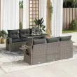 Ta vrtna sedežna garnitura je popoln dodatek za vaše dvorišče, teraso ali verando, saj zagotavlja udoben in vabljiv prostor za klepet z družino in prijatelji ali preprosto za sprostitev in uživanje na prostem. Trpežen material: PE ratan, znan tudi kot poli ratan, je močan sintetični material, ki ne potrebuje vzdrževanja in je videti kot naravni ratan. Je lahek, enostaven za čiščenje in se zaradi svoje vzdržljivosti in odpornosti na vremenske vplive pogosto uporablja za zunanje pohištvo.Funkcija shranjevanja z vodoodporno vrečo: Vsak vrtni sedež ima pod sedežem prostor za shranjevanje, opremljen z vodoodporno vrečo za shranjevanje blazin, igrač in drugih predmetov. Notranja torba ima zgornji pokrov in jo je mogoče varno pritrditi na sedež s kavljem in zanko za večjo stabilnost.Nastavljiva mizna plošča: Z dvigom mizne plošče lahko mizo povišate, s čimer se zunanja klubska mizica spremeni v jedilno mizo. Popolna je za sprejemanje gostov ali uživanje v obrokih na prostem.Prevleko je mogoče odstraniti in oprati: Te sedežne blazine imajo odstranljive prevleke za lažje pranje in vzdrževanje.Robusten in stabilen okvir: Jeklen okvir s prašnim premazom je močan, stabilen, trpežen ter odporen na korozijo in slabe vremenske razmere, kar zagotavlja dolgotrajno delovanje. Dobro je vedeti:Če želite, da vaše zunanje pohištvo ostane lepo, vam priporočamo, da ga zaščitite z vodoodporno prevleko.Dimenzije vodoodporne vreče: 55 x 53 x 34 cm (D x Š x V)Največja dovoljena teža (na sedež): 110 kgUV-odpornoPlastične nastavljive nogePotrebno sestavljanje: DaSrednji sedež:Barva: SivaMaterial: PE ratan, jeklen okvir s prašnim premazomDimenzije: 55 x 62 x 69 cm (Š x G x V)Velikost sedeža: 55 x 55 cm (Š x G)Višina sedeža od tal (brez blazine): 37 cmKavč z naslonjali za roke:Barva: SivaMaterial: PE ratan, jeklen okvir s prašnim premazomDimenzije: 62 x 62 x 69 cm (Š x G x V)Velikost sedeža: 55 x 55 cm (Š x G)Višina sedeža od tal (brez blazine): 37 cmVišina naslonjal za roke od tal: 55 cmMiza:Barva: SivaMaterial: PE ratan, jeklo s prašnim premazom, kaljeno stekloDimenzije: 100 x 55 x 44/73 cm (D x Š x V)Blazina:Barva: Temno sivaMaterial prevleke: Tkanina (100 % poliester)Polnilo sedežne blazine: PenaPolnilo hrbtne blazine: bombažna vlaknaDimenzije sedežne blazine: 55 x 55 x 3 cm (Š x G x D)Dimenzije hrbtne blazine: 55 x 45 x 13 cm (D x Š x D)Paket vsebuje:2 x Srednji kavč s funkcijo shranjevanja z vodoodporno vrečo4 x Kavč s funkcijo shranjevanja z vodoodporno vrečo1 x Miza6 x Blazina za hrbet6 x Sedežna blazina s snemljivo pralno prevleko 3326421