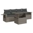 Ta vrtna sedežna garnitura je popoln dodatek za vaše dvorišče, teraso ali verando, saj zagotavlja udoben in vabljiv prostor za klepet z družino in prijatelji ali preprosto za sprostitev in uživanje na prostem. Trpežen material: PE ratan, znan tudi kot poli ratan, je močan sintetični material, ki ne potrebuje vzdrževanja in je videti kot naravni ratan. Je lahek, enostaven za čiščenje in se zaradi svoje vzdržljivosti in odpornosti na vremenske vplive pogosto uporablja za zunanje pohištvo.Funkcija shranjevanja z vodoodporno vrečo: Vsak vrtni sedež ima pod sedežem prostor za shranjevanje, opremljen z vodoodporno vrečo za shranjevanje blazin, igrač in drugih predmetov. Notranja torba ima zgornji pokrov in jo je mogoče varno pritrditi na sedež s kavljem in zanko za večjo stabilnost.Nastavljiva mizna plošča: Z dvigom mizne plošče lahko mizo povišate, s čimer se zunanja klubska mizica spremeni v jedilno mizo. Popolna je za sprejemanje gostov ali uživanje v obrokih na prostem.Prevleko je mogoče odstraniti in oprati: Te sedežne blazine imajo odstranljive prevleke za lažje pranje in vzdrževanje.Robusten in stabilen okvir: Jeklen okvir s prašnim premazom je močan, stabilen, trpežen ter odporen na korozijo in slabe vremenske razmere, kar zagotavlja dolgotrajno delovanje. Dobro je vedeti:Če želite, da vaše zunanje pohištvo ostane lepo, vam priporočamo, da ga zaščitite z vodoodporno prevleko.Dimenzije vodoodporne vreče: 55 x 53 x 34 cm (D x Š x V)Največja dovoljena teža (na sedež): 110 kgUV-odpornoPlastične nastavljive nogePotrebno sestavljanje: DaSrednji sedež:Barva: SivaMaterial: PE ratan, jeklen okvir s prašnim premazomDimenzije: 55 x 62 x 69 cm (Š x G x V)Velikost sedeža: 55 x 55 cm (Š x G)Višina sedeža od tal (brez blazine): 37 cmKavč z naslonjali za roke:Barva: SivaMaterial: PE ratan, jeklen okvir s prašnim premazomDimenzije: 62 x 62 x 69 cm (Š x G x V)Velikost sedeža: 55 x 55 cm (Š x G)Višina sedeža od tal (brez blazine): 37 cmVišina naslonjal za roke od tal: 55 cmMiza:Barva: SivaMaterial: PE ratan, jeklo s prašnim premazom, kaljeno stekloDimenzije: 100 x 55 x 44/73 cm (D x Š x V)Blazina:Barva: Temno sivaMaterial prevleke: Tkanina (100 % poliester)Polnilo sedežne blazine: PenaPolnilo hrbtne blazine: bombažna vlaknaDimenzije sedežne blazine: 55 x 55 x 3 cm (Š x G x D)Dimenzije hrbtne blazine: 55 x 45 x 13 cm (D x Š x D)Paket vsebuje:2 x Srednji kavč s funkcijo shranjevanja z vodoodporno vrečo2 x Kavč s funkcijo shranjevanja z vodoodporno vrečo1 x Miza4 x Blazina za hrbet4 x Sedežna blazina s snemljivo in pralno prevleko 3326401