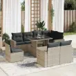 vidaXL Vrtna sedežna garnitura 9-delna z blazinami sv. siv poli ratan