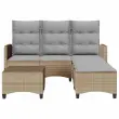 vidaXL Vrtna sedežna garnitura 3-delna z blazinami L bež poli ratan