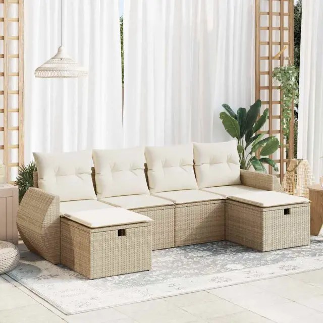 vidaXL Vrtna sedežna garnitura 6-delna z blazinami bež poli ratan