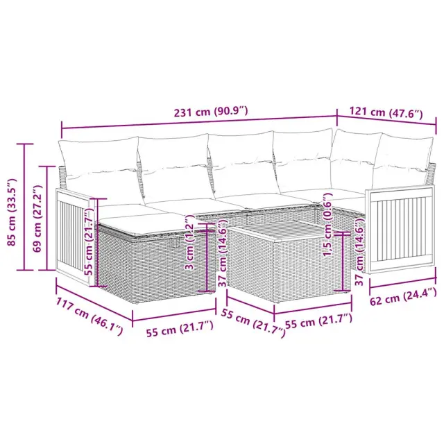 vidaXL Vrtna sedežna garnitura 7-delna z blazinami bež poli ratan