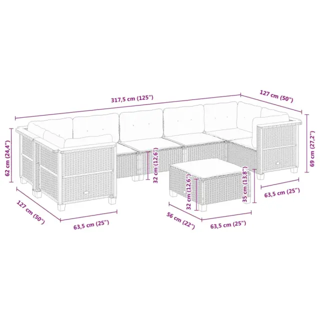 vidaXL Vrtna sedežna garnitura 8-delna z blazinami bež poli ratan
