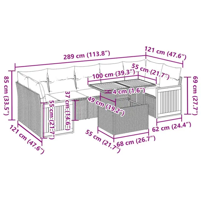 vidaXL Vrtna sedežna garnitura z blazinami 8-delna siv ratan/akacija