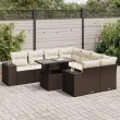 vidaXL Vrtna sedežna garnitura 9-delna z blazinami rjava poli ratan